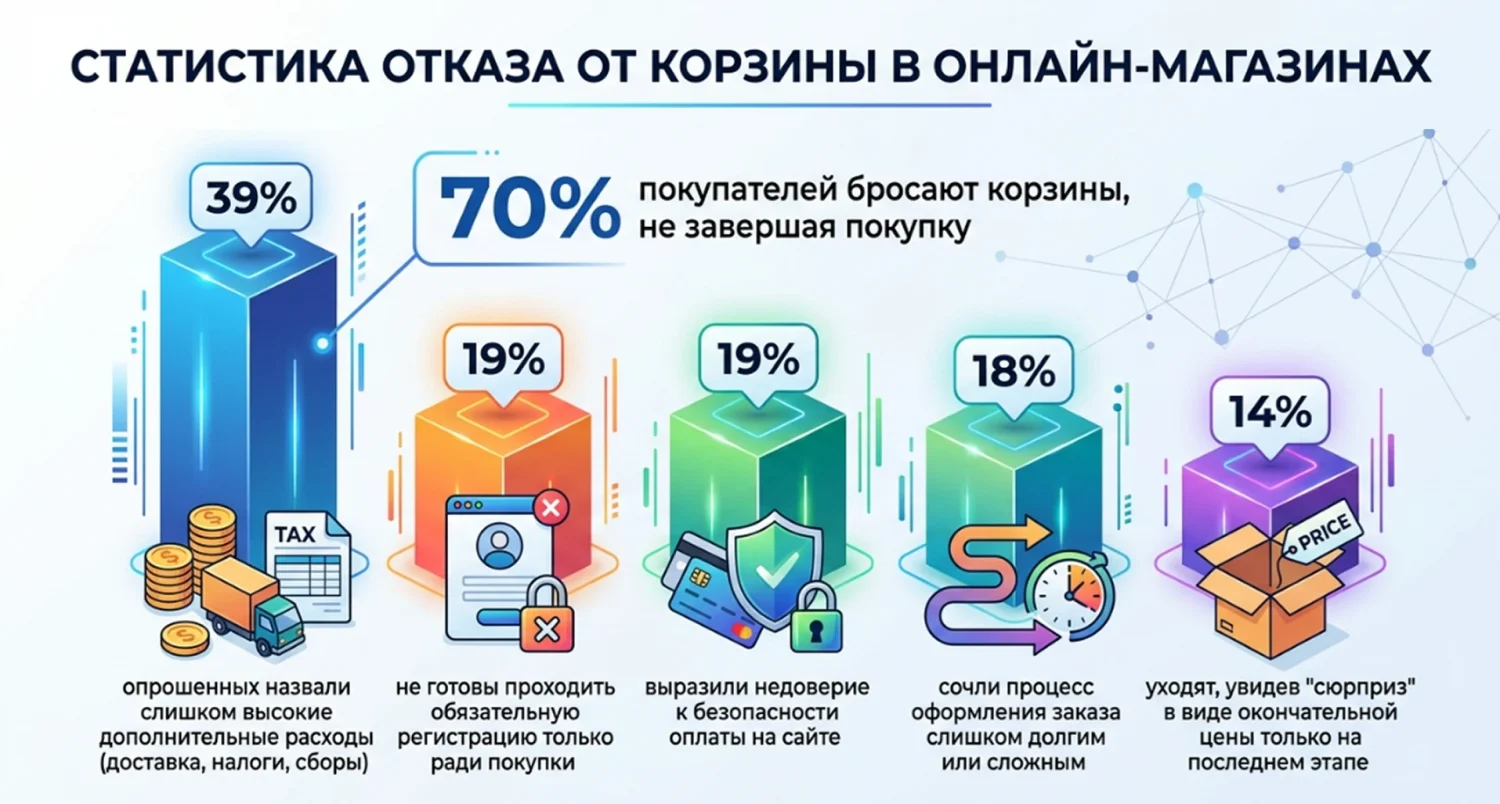 70% покупателей бросают корзину, так и не завершив покупку.
